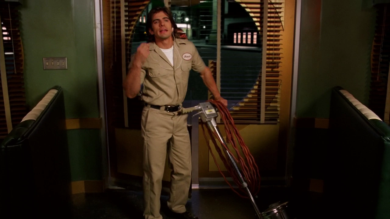 He often listens to his headphones and dances to the music as he cleans, which led to him unwittingly participating in Olive's fantasy musical number to the tune of "Hopelessly Devoted to You," which she sang one night when she was particularly distraught over the blossoming relationship between Ned and Charlotte "Chuck" Charles.[1]